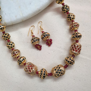 An elegant designer Jadau bead necklace with the most stunning festoon. The perfect accessory for your occasion. This necklace is handcrafted with love