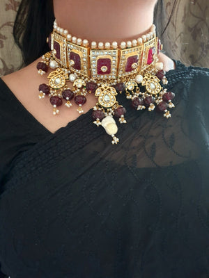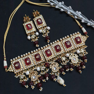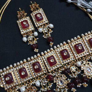 Red Carving Stone Kundan Choker Necklace Set