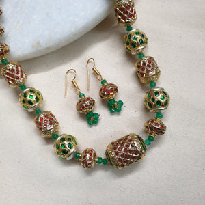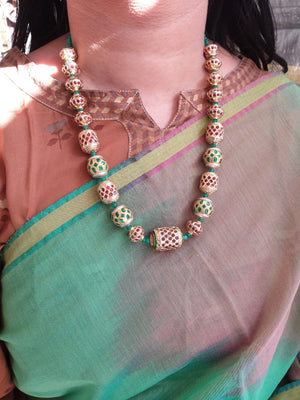 An elegant designer Jadau bead necklace with the most stunning festoon. The perfect accessory for your occasion. This necklace is handcrafted with love