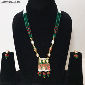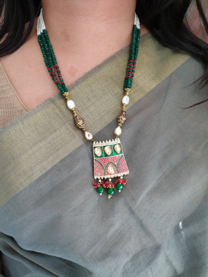 An elegant coral beads stone meenakari pendant with the most stunning festoon. The perfect accessory for your occasion. This necklace is handcrafted with love