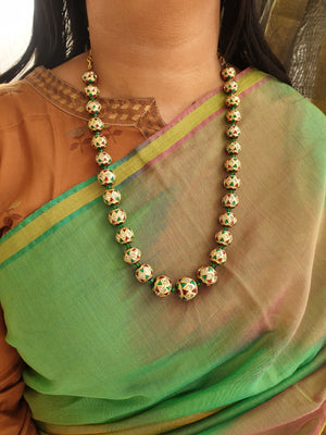 An elegant designer meenakari necklace with the most stunning festoon. The perfect accessory for your occasion. This necklace is handcrafted with love