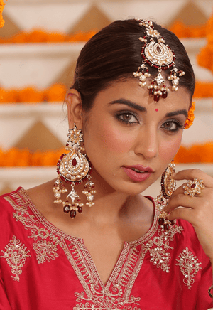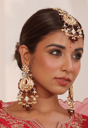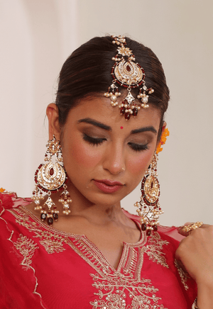 Package Includes: 1 pair of earrings, 1 maang tikka