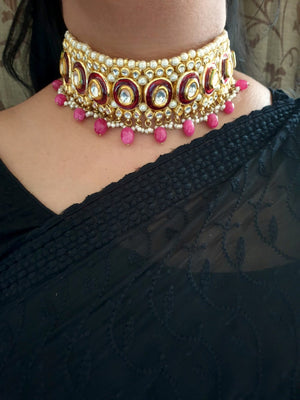 An elegant pearl bead stone Kundan choker with the most stunning festoon. The perfect accessory for your occasion. This necklace is handcrafted with love