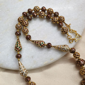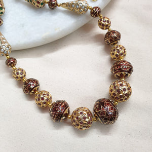 An elegant designer red stone necklace with the most stunning festoon. The perfect accessory for your occasion. This necklace is handcrafted with love
