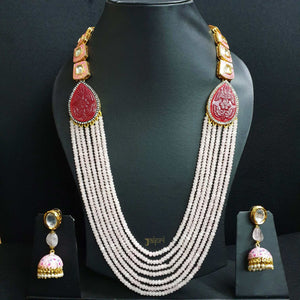 Red Meenakari & Kundan Pearl Beads Stone Necklace With Earrings