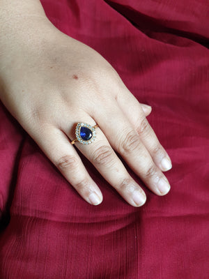 Dark Blue Pear Stone Small Adjustable Ring