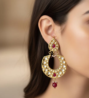An elegant Kundan earring with the most stunning festoon. The perfect accessory for your occasion. These earrings are handcrafted with love