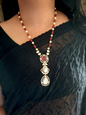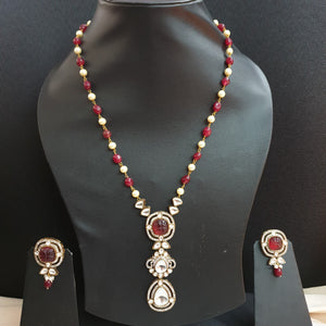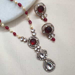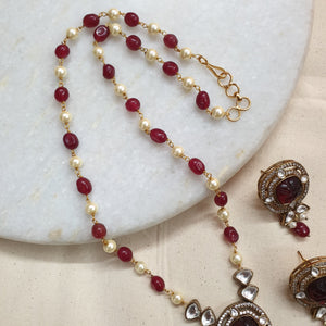 Red Stone Kundan Delicate Pendant Set With Earrings