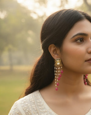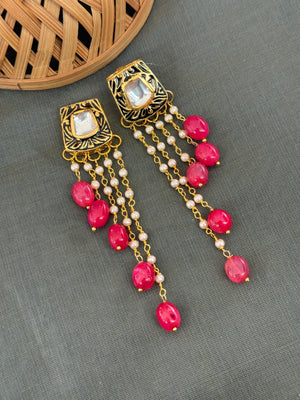Red Stone Meenakari Long Earrings