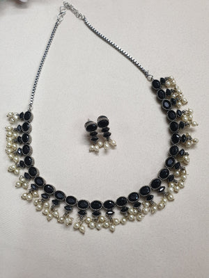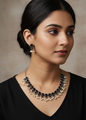 An elegant black stone oxidised necklace with the most stunning festoon. The perfect accessory for your occasion. This necklace is handcrafted with love