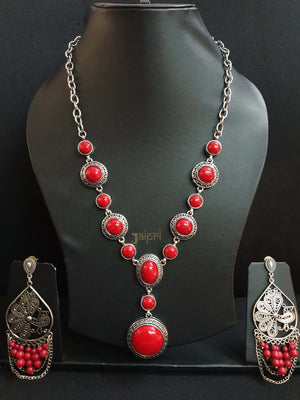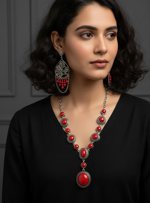 An elegant red stone necklace with the most stunning festoon. The perfect accessory for your occasion. This necklace is handcrafted with love