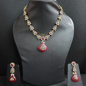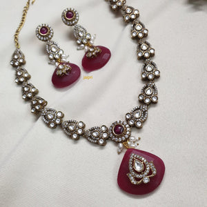 An elegant designer Kundan red-stone pendant necklace with the most stunning festoon. The perfect accessory for your occasion. This necklace is handcrafted with love