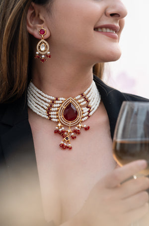 A timeless blend of pearls, stone accents that adds royal elegance to both ethnic and Indo-western outfits.