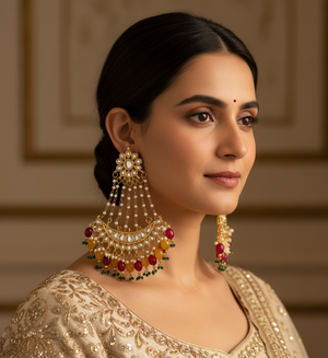 Styling: These are the perfect accessories to accentuate the elegance of your traditional outfit, furthermore, adding a perfect pop of color and edginess. The beautiful elements of the earrings go well with the saree or any Western dress. A statement earring is enough to make the entire outfit look amazing. It looks better with a solid color outfit or pastel outfit.
