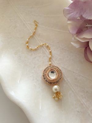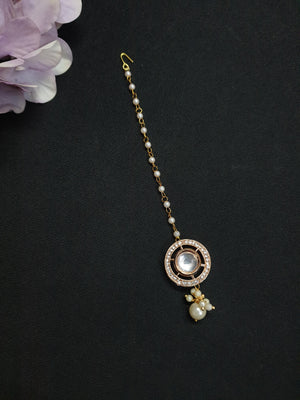 Rose Gold Kundan Polki Pearl Beaded Maang Tikka