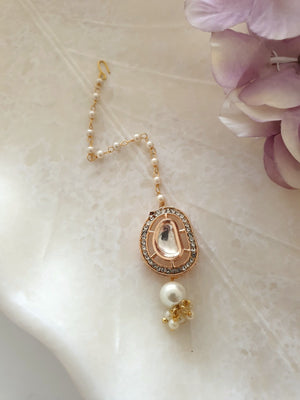 Rose Gold Premium Kundan Polki Pearl Beaded Maang Tikka