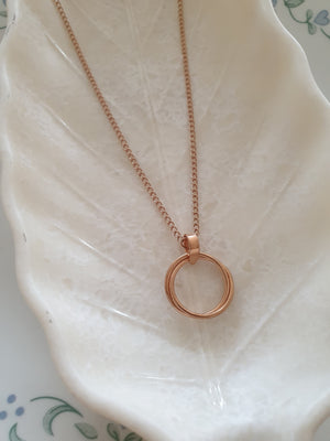 Two-Linked Circle Necklace. This beautiful and simple Two Linked Circle Necklace features a handmade link made of two graduated circles.