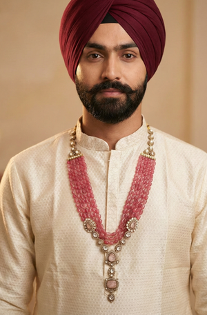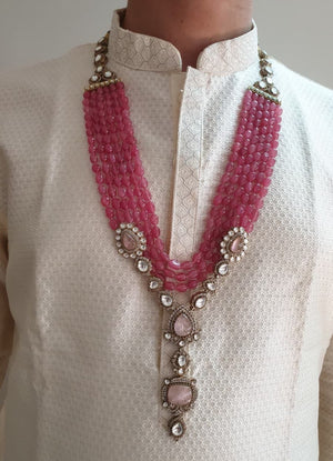 Rose Quartz Color Premium Kundan Stone Groom Necklace