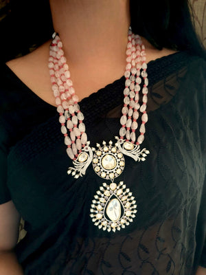 Rose Quartz Uncut Mossansite Kundan Pendant Set