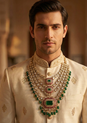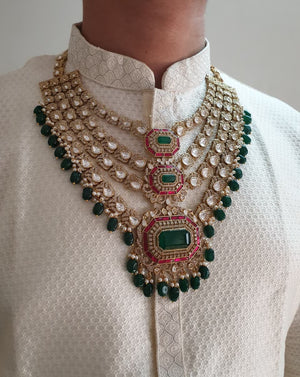 Royal Emerald Green Color and Polki Maharaja Groom Necklace