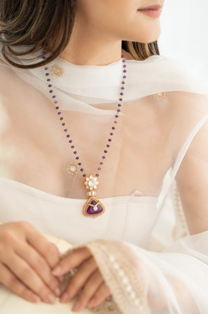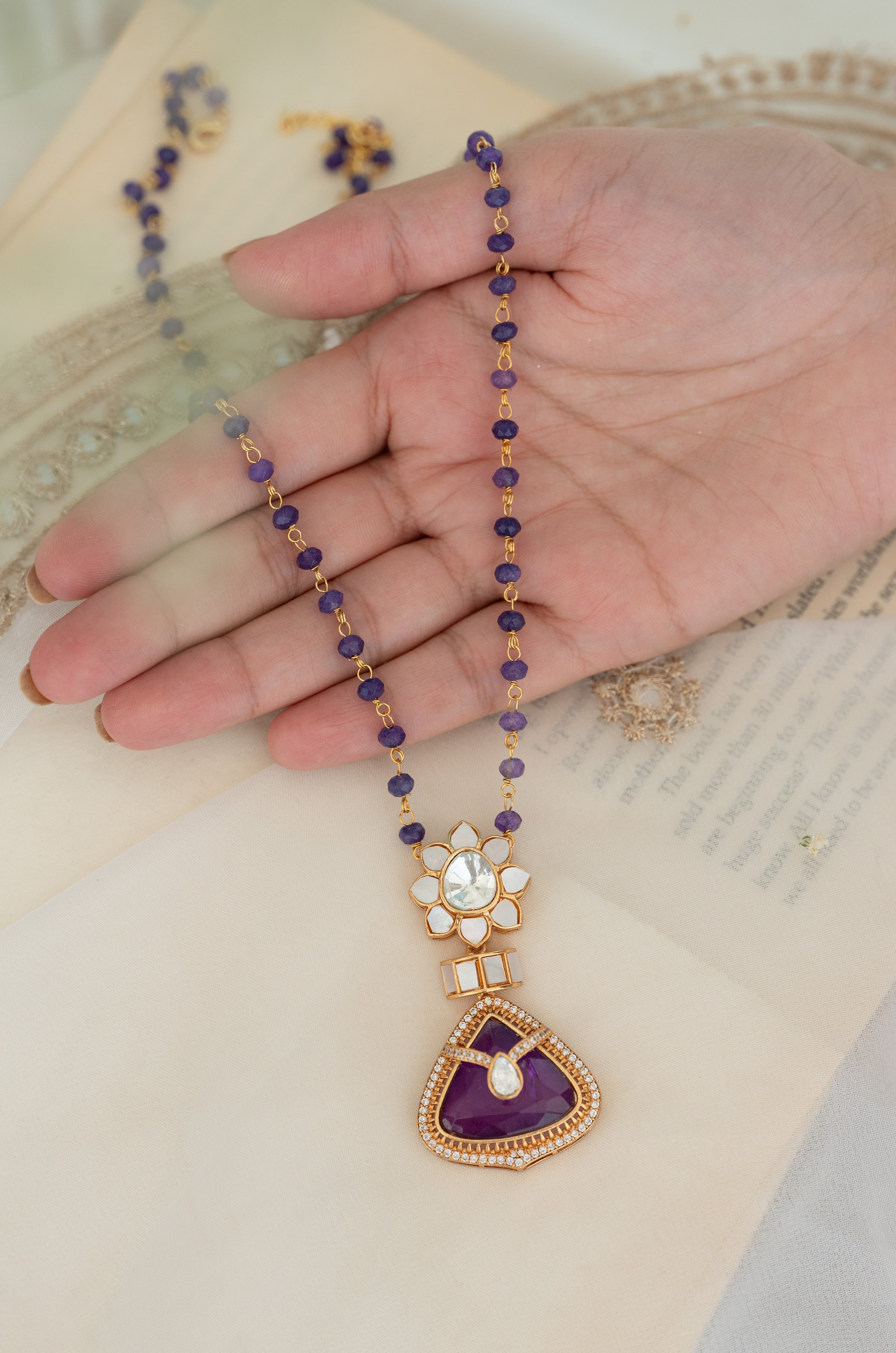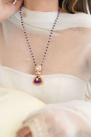 Royal Purple Beaded Pendant Necklace with Kundan Accents