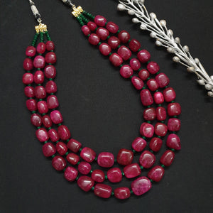 Ruby Beaded Three Layered Indian Groom Necklace For Wedding