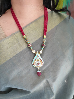 An elegant ruby beads stone fusion pendant with the most stunning festoon. The perfect accessory for your occasion. This necklace is handcrafted with love