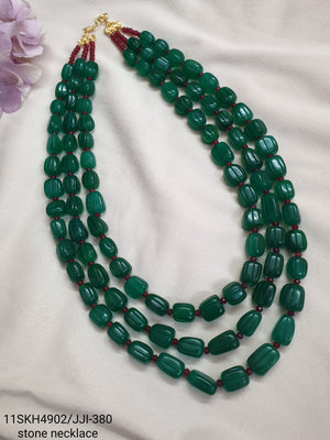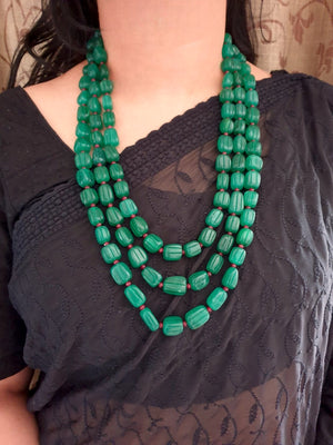 Emerald Color Carving Beaded Layered Long Necklace Set