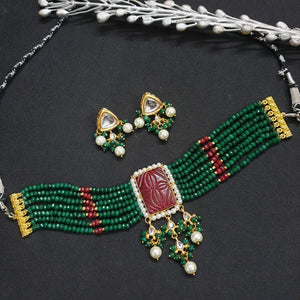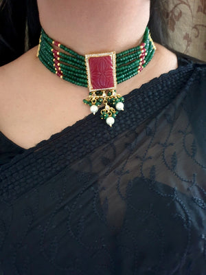 Ruby Carving Stone Choker Necklace Set With Earrings