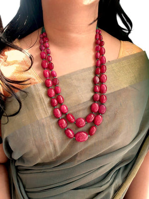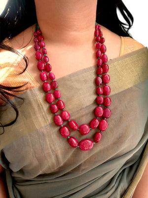 Ruby Color Bead Two Layered Necklace