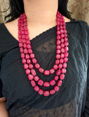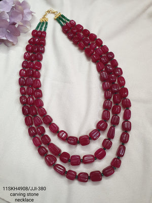 Ruby Color Carving Beaded Layered Long Necklace Set