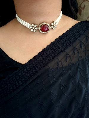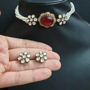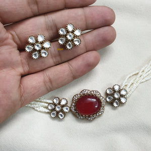 Ruby Color Doublet Stone Kundan Choker Necklace