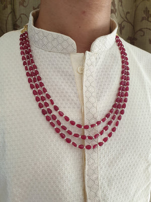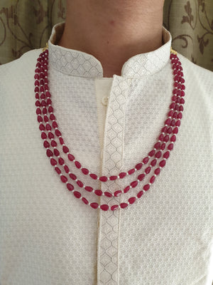 Ruby Drop Beads Three Layered Groom Wedding Necklace