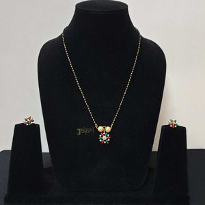 Ruby Green With Pearl Floral Mangalsutra With Earrings