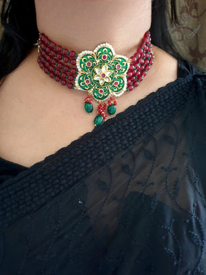 Styling: These are the perfect accessories to accentuate the elegance of your traditional outfit, furthermore, adding a perfect pop of color and edginess. The beautiful elements of the necklace go well with the saree or any western dress. A statement necklace is enough to turn the entire outfit look amazing. It looks better with a solid color outfit or pastel outfit.