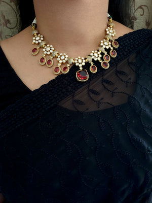 Elevate your style with this exquisite Designer Kundan polki Necklace set. Its intricate craftsmanship and regal charm make it the perfect statement piece