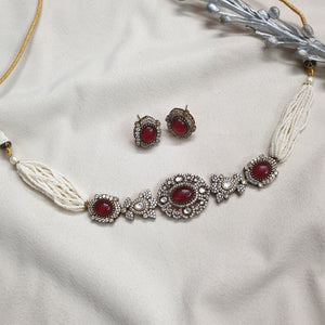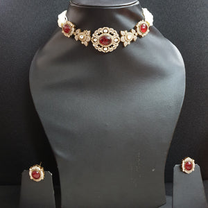 Ruby Polki Stone Kundan Choker Necklace With Studs