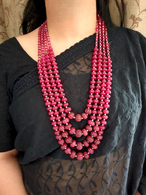 Elevate your style with this exquisite ruby stone beaded necklace set. Its intricate craftsmanship and regal charm make it the perfect statement piece