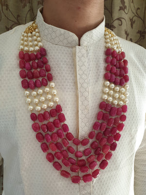 Ruby Red and Pearl Five Layered Groom Necklace Set