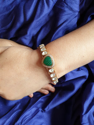 Emerald Green Carving Stone Kundan Polki Openable Kada
