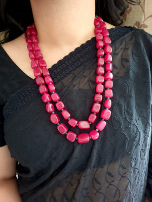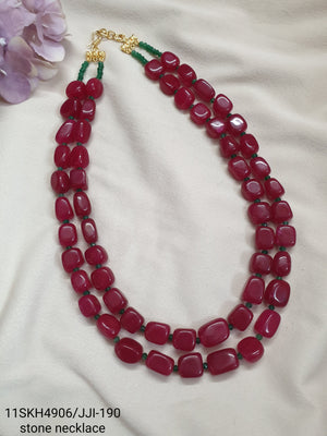 Elevate your style with this exquisite ruby stone beaded necklace set. Its intricate craftsmanship and regal charm make it the perfect statement piece