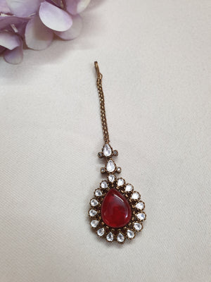 Ruby Red Color Stone Designer Kundan Maang Tikka