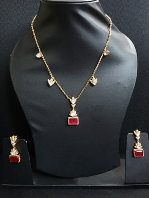 Ruby Red Kundan Chain Necklace Set