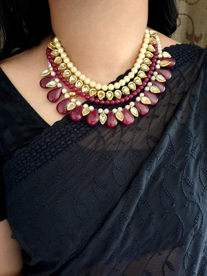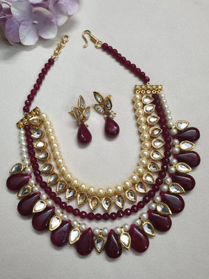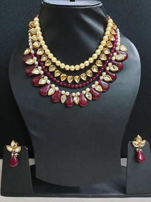 Ruby Red Kundan Necklace Set With Earrings