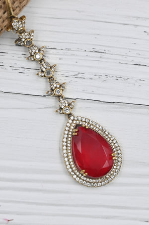 An elegant Kundan & stone maang tikka the most stunning festoon. The perfect accessory for your occasion. This maang tikka is handcrafted with love