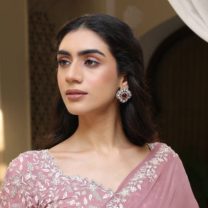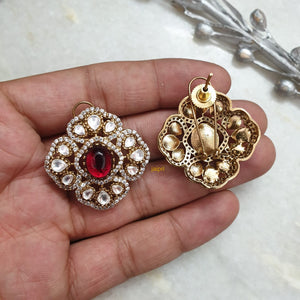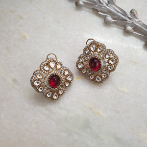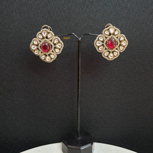 Ruby Red Stone Moissanite Kundan Polki Studs Earrings