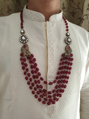 Styling: These are the perfect accessories to accentuate the elegance of your traditional outfit, adding a perfect pop of color and edginess. The beautiful elements of the necklace go well with the sherwani or narrow jacket. A statement groom necklace is enough to make the entire outfit look amazing. It looks better with a solid color outfit or pastel outfit.