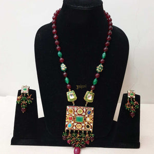Ruby Stone Meenakari Pendant With Earrings