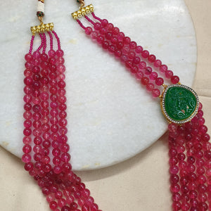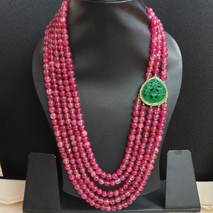 Ruby Stone Necklace With Emerald Engarved American Diamond Brooch
