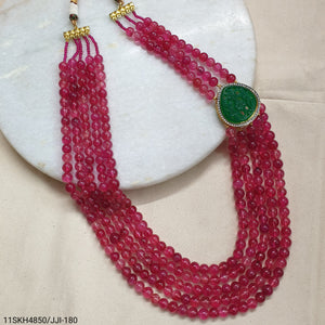 Elevate your style with this exquisite ruby beaded necklace set. Its intricate craftsmanship and regal charm make it the perfect statement piece